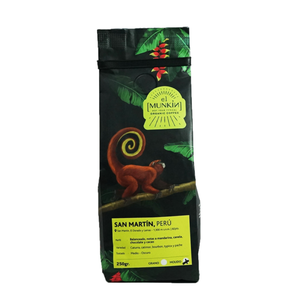 Blend de Typica, Bourbon y Pache cultivadas sobre los 1200 m s.n.m., con certificación orgánica y tueste medio-oscuro. De perfil dulce y balanceado, entrega notas cítricas, de chocolate y panela. Elaborado bajo prácticas sostenibles, combina sabor armonioso y compromiso ambiental.