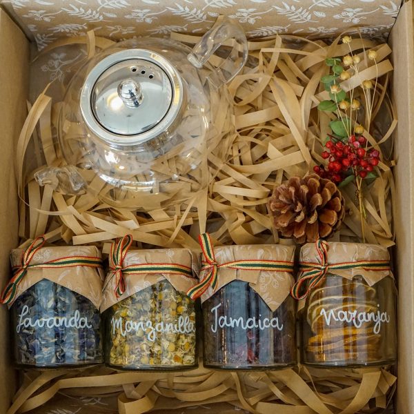 Todo lo necesario para preparar infusiones naturales en casa, con estilo y sencillez. Este pack incluye una tetera de vidrio resistente al calor, ideal para disfrutar del proceso y el color de cada mezcla. Lo acompañan tres clásicos: manzanilla, jamaica y lavanda andina, además de rodajas de naranja deshidratada que aportan un toque cítrico y aromático.